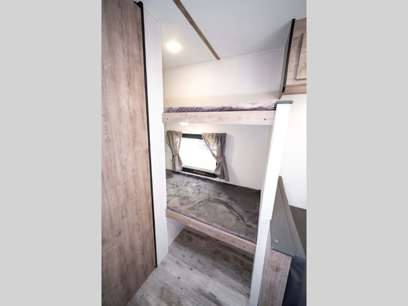 Sleeps 5 Length 20 ft 11 in Ext Width 8 ft Ext Height 10 ft 4 in Int Height 6 ft 8 in Hitch Weight 360 lbs Dry Weight 3100 lbs Cargo Capacity 760 lbs Fresh Water Capacity 23 gals Grey Water Capacity 36 gals Black Water Capacity 36 gals Furnace BTU 20000 btu Number Of Bunks 2 Available Beds Queen Cooktop Burners 2 Number of Awnings 1 LP Tank Capacity 20 lbs Water Heater Type Tankless AC BTU 13500 btu Awning Info Power Axle Count 1 Number of LP Tanks 1 Shower Type Tub/Shower Combo Electrical Service 30 amp Similar Floorplans